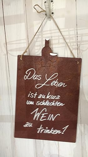 Schild Edelrost Mit Weinflasche Und Glas Rostschild Mit Spruch Das Leben Ist Zu Kurz Um Schlechten Wein Zu Trinken Gartendeko Amazon De Handmade