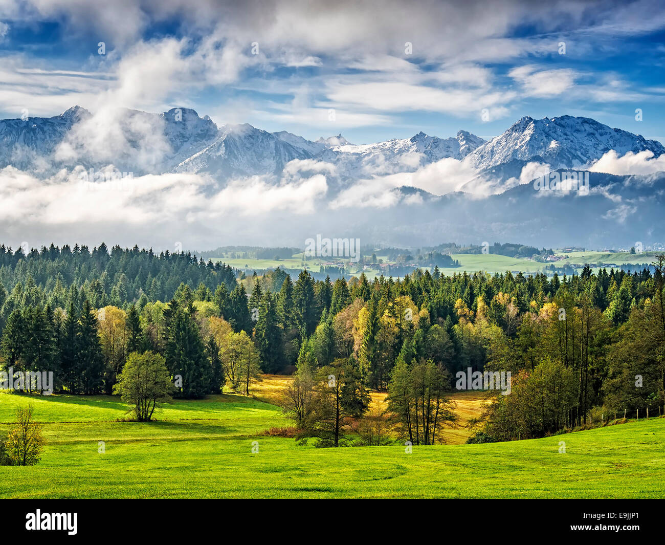 Landschaft Im Allgau Bayern Mit Bergen Und Wiesen Stockfotografie Alamy