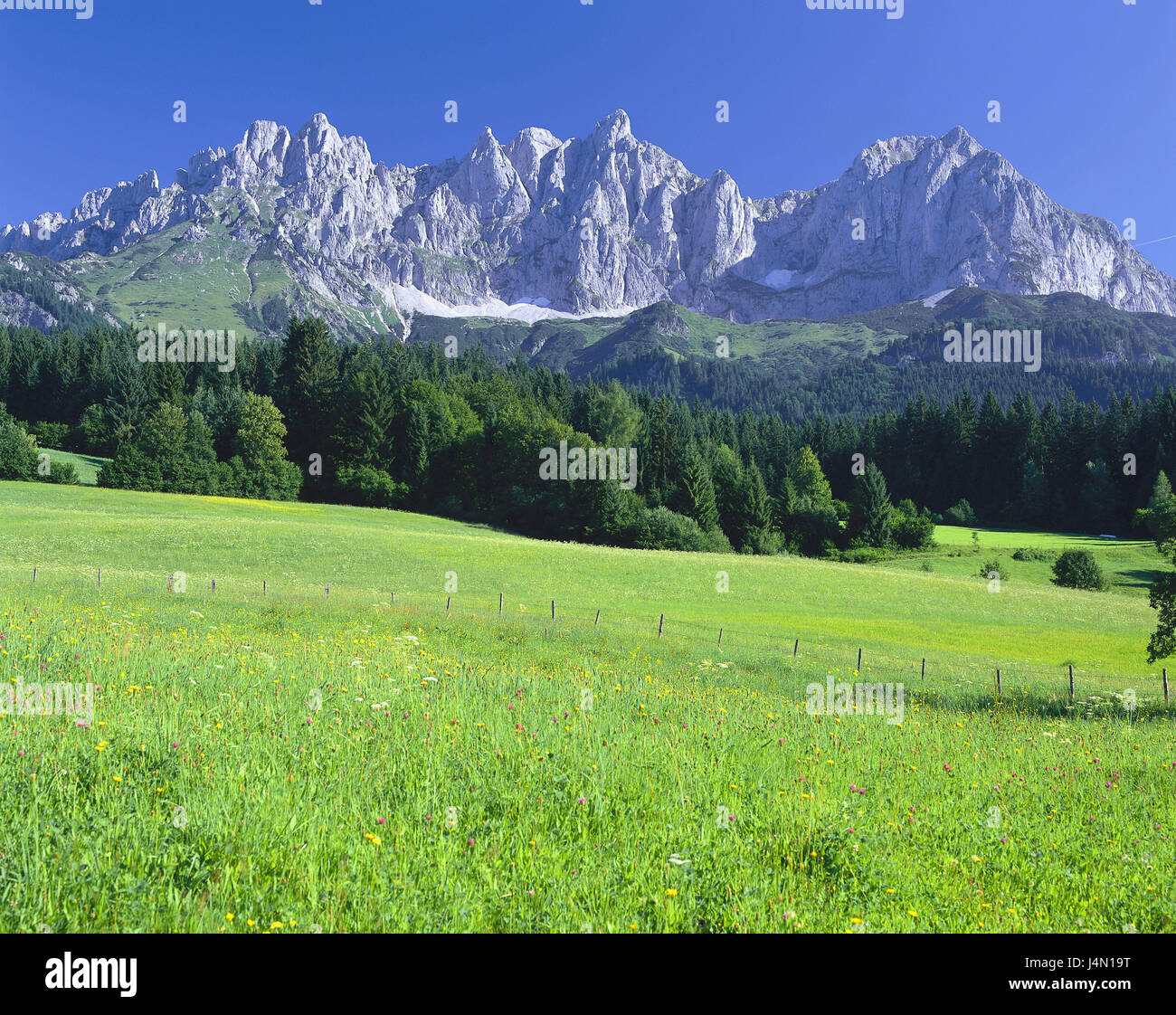 Osterreich Tirol Going Wiesen Kaisergebirge Landschaft Berge Berge Regierung Alpspitze Ackerlspitze Maukspitze Aussicht Menschenleer Berglandschaft Stockfotografie Alamy