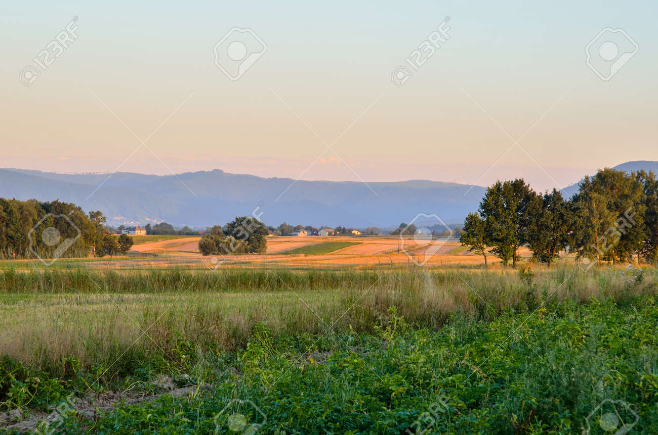 Sommer Nachmittag Landschaft Schone Landliche Landschaft Mit Bergen Im Hintergrund Lizenzfreie Fotos Bilder Und Stock Fotografie Image 90847920